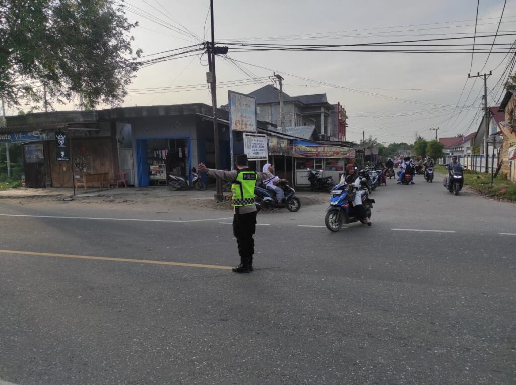 ACEH UTARA – Polsek Syamtalira Bayu, Polres Lhokseumawe Polda Aceh melaksanakan kegiatan pengaturan arus lalu lintas (Lalin) dalam rangka giat Strong Point Pagi. Kegiatan ini bertujuan untuk mengurangi kemacetan dan memastikan kelancaran aktivitas masyarakat di pagi hari, terutama di jalur-jalur yang padat arus kendaraan seperti jalan Medan – Banda Aceh khususnya di daerah persekolahan Simpang Cot Plieng Kec. Syamtalira Bayu. Kab. Aceh Utara. Rabu 05 /02/2025 pagi.
