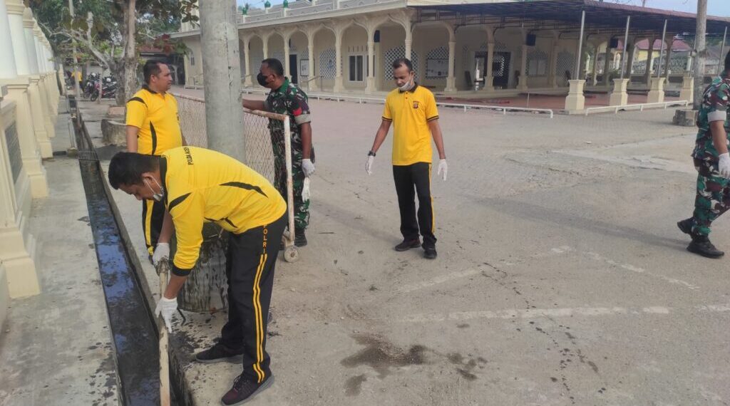 “Polri hadir tidak hanya dalam penegakan hukum, tetapi juga ikut bergotong royong bersama masyarakat untuk menjaga kebersihan dan kenyamanan lingkungan, khususnya rumah ibadah menjelang Ramadhan,” ujar AKP Gunanto.