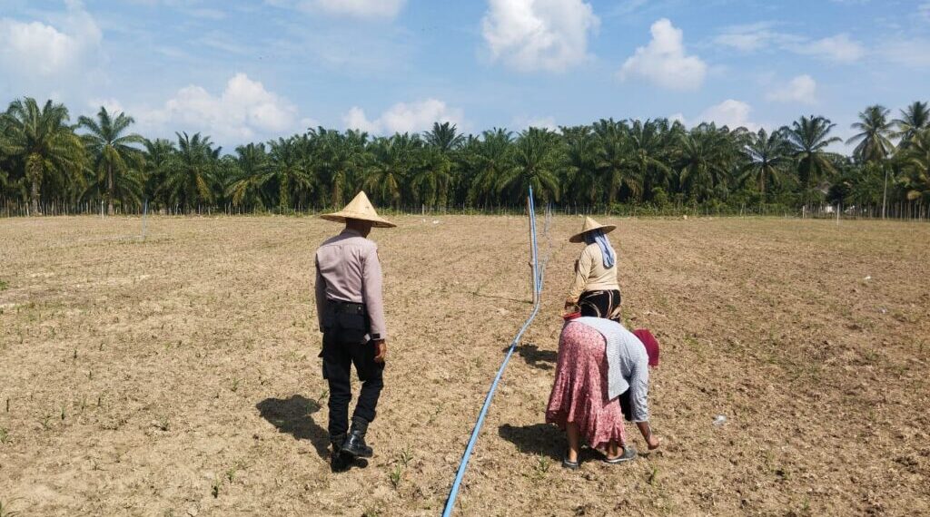 Pihak Polsek juga memberikan semangat kepada petani agar terus menjaga semangat gotong royong dalam mengelola lahan dan tetap menjaga koordinasi dengan pihak kepolisian apabila menghadapi kendala di lapangan.