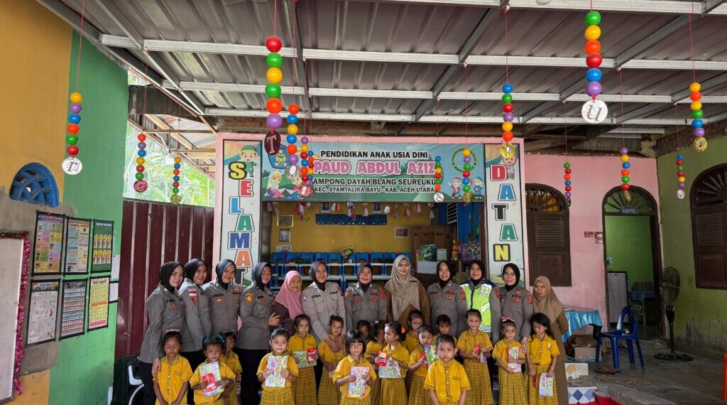 ACEH UTARA – Kepedulian Polri terhadap masyarakat terdampak banjir kembali ditunjukkan melalui kegiatan Polwan Peduli Kemanusiaan Polres Lhokseumawe di Desa Dayah Blang Seureukuy, Kecamatan Syamtalira Bayu, Kabupaten Aceh Utara, Kamis (15/1/2026).