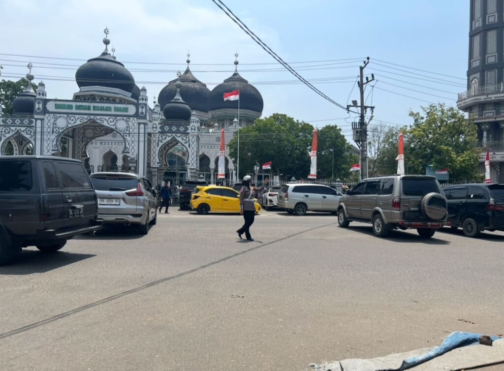 Lhokseumawe – Personel Polwan Satuan Lalu Lintas (Satlantas) Polres Lhokseumawe menggelar patroli serta kegiatan strong point di sekitar masjid-masjid di Kota Lhokseumawe pada Jumat (14/2/2025). Kegiatan ini bertujuan untuk memberikan imbauan kepada kaum laki-laki agar melaksanakan sholat Jumat berjamaah serta memastikan kelancaran arus lalu lintas.