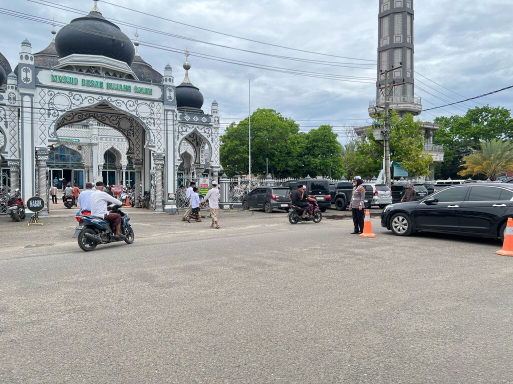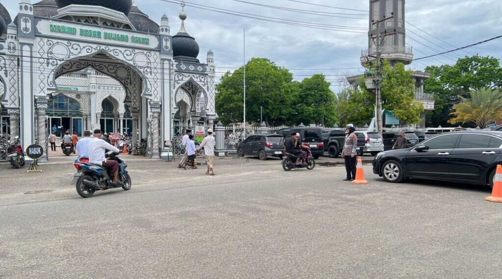 Lhokseumawe – Suasana Jumat siang di Kota Lhokseumawe tampak berbeda. Sejumlah Polisi Wanita (Polwan) dari Satlantas Polres Lhokseumawe hadir di persimpangan dan area sekitar masjid dengan senyum ramah, melaksanakan tugas pengamanan dan pengaturan lalu lintas jelang pelaksanaan Shalat Jumat, Jumat (25/4/2025).