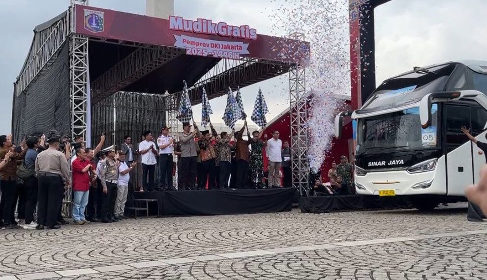 Jakarta: Gubernur Jakarta, Pramono Anung resmi melepas pemudik yang mengikuti program Mudik Gratis Pemerintah Provinsi (Pemprov) DKI Jakarta Tahun 2025, di Silang Monas Barat, Jakarta Pusat, pada Kamis (27/3/2025). Dalam kesempatan ini, Pramono memberangkatkan ratusan bus mudik gratis ke 20 kota/kabupaten di 6 provinsi di Indonesia.
