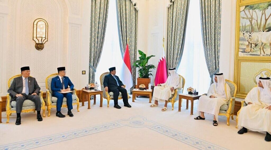 jakarta- Presiden Prabowo Subianto dan Emir Qatar, Sheikh Tamim Bin Hamad Al-Thani menyaksikan langsung penandatanganan memorandum of understanding (MoU) antara Pemerintah Republik Indonesia dan Pemerintah Negara Qatar. Penandatanganan tersebut digelar dalam pertemuan kedua pemimpin di Istana Amiri Diwan, Doha, Minggu (13/04/2025).