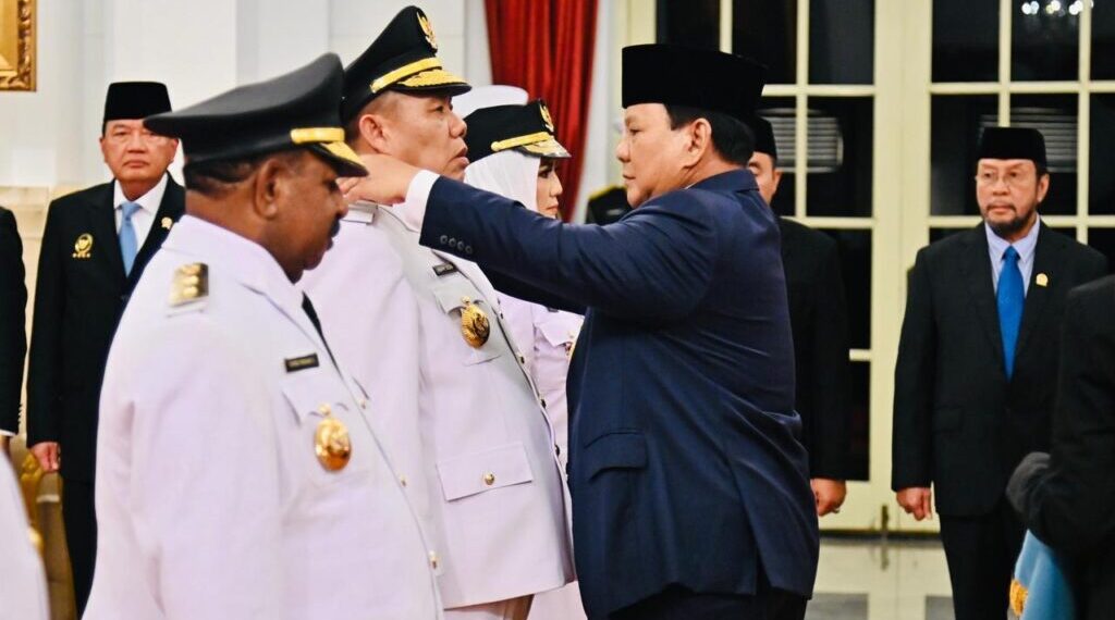 Usai pembacaan Keppres RI, Presiden Prabowo pun mengambil sumpah jabatan para kepala daerah yang dilantik.