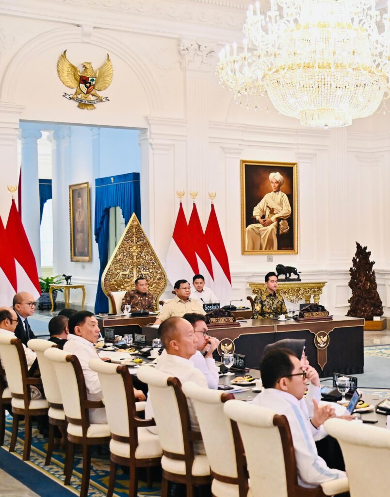 Presiden Prabowo Subianto memimpin rapat terbatas yang membahas perkembangan Kawasan Ekonomi Khusus (KEK) bersama sejumlah Menteri Kabinet Merah Putih di Istana Merdeka, Jakarta, pada Selasa (22/07/2025). Rapat tersebut digelar secara hybrid, di mana Presiden Prabowo, Wakil Presiden Gibran Rakabuming, sejumlah menteri, dan perwakilan KEK yang hadir secara langsung di Istana Merdeka terhubung dengan sejumlah perwakilan KEK lainnya dari berbagai wilayah di tanah air melalui video konferensi.