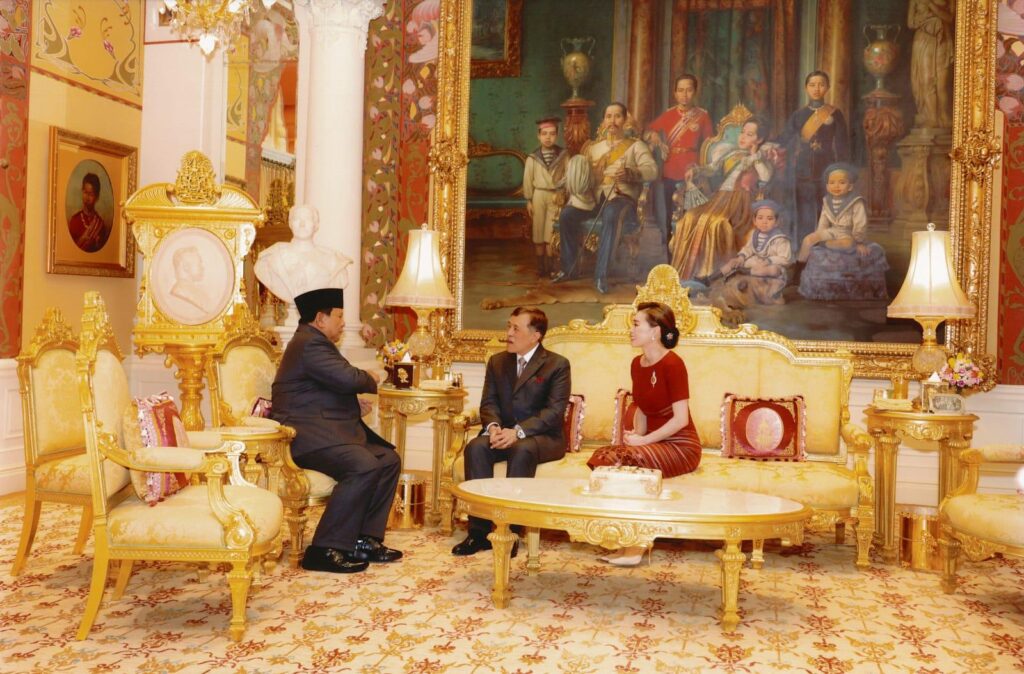 Setibanya di Front Hall Amphorn Royal Palace, Presiden Prabowo disambut langsung oleh Raja Maha Vajiralongkorn dan Ratu Suthida. Dengan penuh kehangatan, ketiganya kemudian bersama-sama berjalan menuju ruang audiensi di dalam kompleks istana. Setelah itu, audiensi berlangsung dalam suasana akrab namun tetap sarat makna diplomatik.