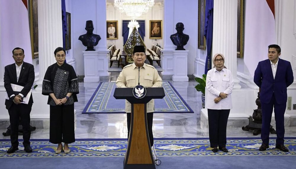 Turut mendampingi Presiden Prabowo dalam menyampaikan keterangan tersebut adalah Menteri Sekretaris Negara Prasetyo Hadi, Menteri Keuangan Sri Mulyani, Menteri Pendayagunaan Aparatur Negara dan Reformasi Birokrasi (Menpan RB) Rini Widyantini, serta Sekretaris Kabinet Teddy Indra Wijaya.