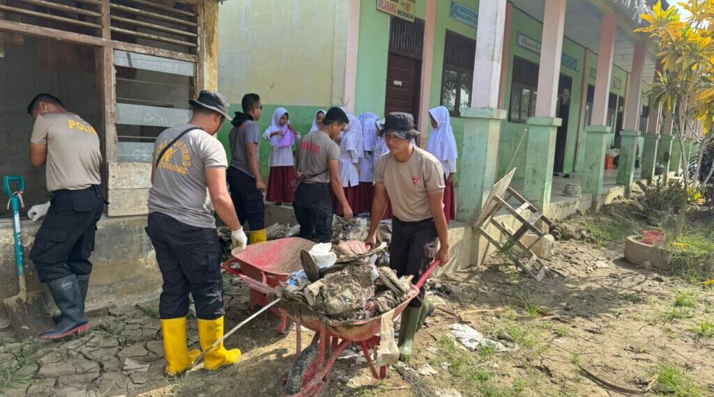 Aceh Utara – Satuan Brimob Polda Kalimantan Timur terus menunjukkan dedikasi kemanusiaan yang tinggi dalam menjalankan tugas Bawah Kendali Operasi (BKO) di Tanah Rencong. Pada Senin (19/01/2026), satu Satuan Setingkat Kompi (SSK) personel Satbrimob Polda Kaltim yang dipimpin oleh Danki Penugasan AKP Elan Suherlan, S.H., terjun langsung melaksanakan kegiatan pembersihan endapan lumpur bekas banjir bandang di SD Negeri 11 Samudera. Kegiatan yang berpusat di wilayah Gampong Baru, Kecamatan Samudera, Kabupaten Aceh Utara ini, bertujuan untuk mempercepat proses pemulihan sarana pendidikan agar para siswa dapat segera kembali belajar di lingkungan yang bersih dan layak.
