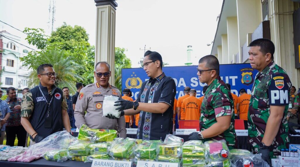 “Arahan Bapak Presiden Prabowo Subianto menekankan akan pentingnya mengambil tindakan tegas dan menyeluruh untuk menghancurkan jaringan narkoba hingga ke akar-akarnya,” ucapnya didampingi Kasat Reskrim Polrestabes Medan AKBP Bayu Putro Wijayanto, Dandim 0201/Medan Kolonel Inf Muhammad Radhi Rusin SIP dan Komandan Denpom I/5 Medan Letkol Cpm Hanri Wira Kusuma.