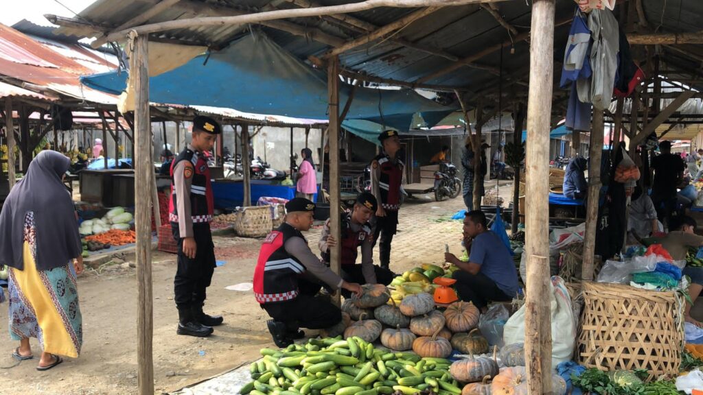 Lhokseumawe – Personel Satuan Samapta Polres Lhokseumawe melaksanakan patroli rutin di sejumlah pasar tradisional, Minggu pagi (26/10/2025). Kegiatan ini difokuskan untuk mencegah aksi premanisme dan pungutan liar (pungli) yang berpotensi mengganggu ketertiban di lingkungan pasar.