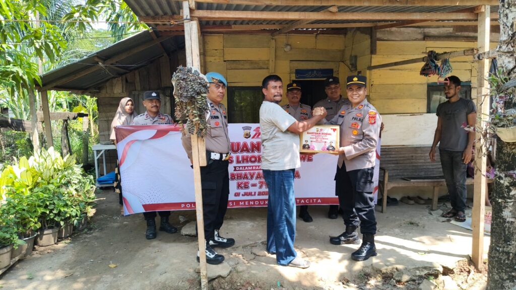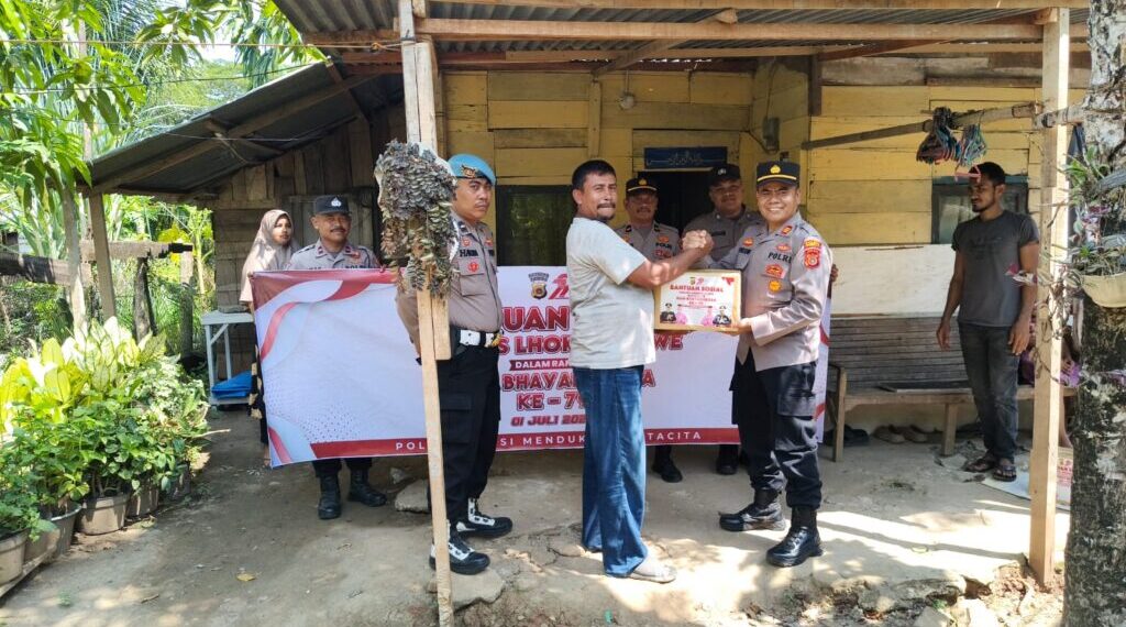 Lhokseumawe – Dalam rangka menyambut Hari Bhayangkara ke-79, Kapolsek Blang Mangat menyalurkan bantuan sosial (bansos) kepada masyarakat yang membutuhkan di wilayah hukum Polsek Blang Mangat, Kota Lhokseumawe, Jumat (27/6/2025) sore.