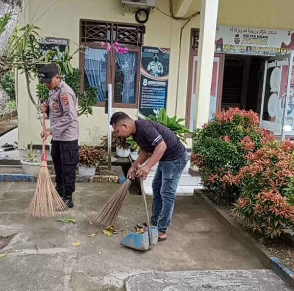 Aceh Utara – Dalam rangka menyambut Hari Ulang Tahun Bhayangkara ke-79 yang jatuh pada 1 Juli 2025, jajaran Polsek Nisam, Polres Lhokseumawe melaksanakan kegiatan korve atau kerja bakti membersihkan lingkungan markas komando (Mako), Kamis (19/6/2025) pagi.