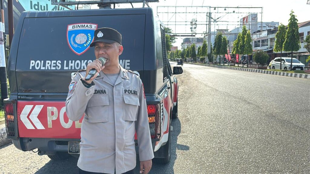 Lhokseumawe – Personel Satuan Pembinaan Masyarakat (Sat Binmas) Polres Lhokseumawe melaksanakan kegiatan himbauan kamtibmas kepada masyarakat di seputaran Kota Lhokseumawe, Selasa (7/10/2025) sore. Kegiatan ini bertujuan untuk mengingatkan warga agar senantiasa menjaga ketertiban, serta mematuhi nilai-nilai syariat Islam dalam kehidupan sehari-hari.
