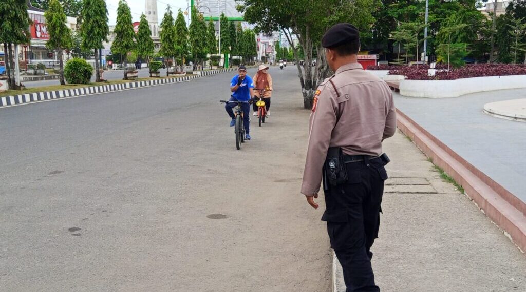 LHOKSEUMAWE – Dalam rangka menjaga keamanan dan ketertiban masyarakat (kamtibmas) pada kegiatan Car Free Day (CFD), personel Satuan Pengamanan Objek Vital (Sat Pamobvit) Polres Lhokseumawe melakukan pengamanan dan patroli di kawasan Lapangan Hiraq dan Jalan Merdeka, Kota Lhokseumawe, Minggu (1/6/2025) pagi.