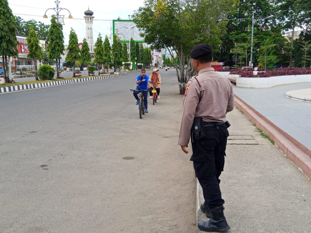 LHOKSEUMAWE – Dalam rangka menjaga keamanan dan ketertiban masyarakat (kamtibmas) pada kegiatan Car Free Day (CFD), personel Satuan Pengamanan Objek Vital (Sat Pamobvit) Polres Lhokseumawe melakukan pengamanan dan patroli di kawasan Lapangan Hiraq dan Jalan Merdeka, Kota Lhokseumawe, Minggu (1/6/2025) pagi.