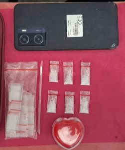 Selain itu, ditemukan juga beberapa plastik kosong, satu pipet plastik berbentuk sekop, satu kotak bekas cincin, satu dompet merah, serta satu unit handphone Android. “Saat ditangkap, pelaku masih menggenggam bungkusan berisi sabu di tangan kanannya. Selain itu juga ditemukan sabu dari dalam saku celananya”, ungkap Kasi Humas.