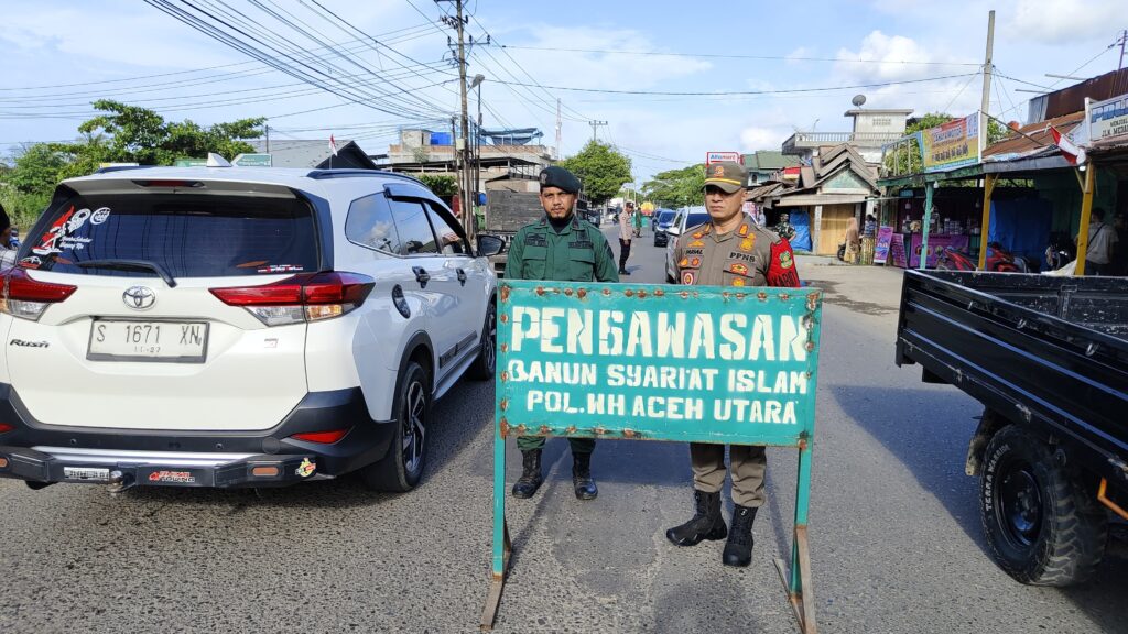 ACEH UTARA – Satuan Polisi Pamong Praja dan Wilayatul Hisbah (Satpol PP-WH) Kabupaten Aceh Utara bersama unsur TNI, Polri, dan pihak Kecamatan Dewantara menggelar pengawasan pelaksanaan Qanun Syariat Islam, Minggu (10/8/2025) pukul 15.30 WIB di Jalan Lintas Medan – Banda Aceh, Kecamatan Dewantara.
