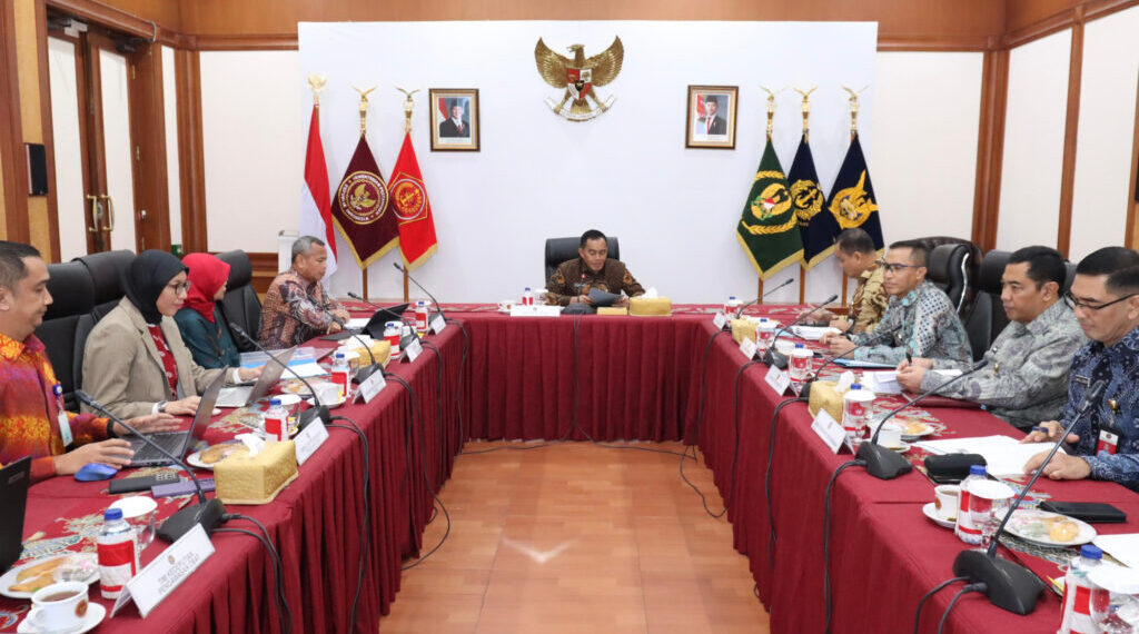 Jakarta – Sekretaris Jenderal Kementerian Pertahanan (Sekjen Kemhan) Letjen TNI Tri Budi Utomo memimpin rapat koordinasi penting bersama Sekretaris Utama Badan Pengawas Obat dan Makanan Republik Indonesia (Sestama BPOM RI) Irjen Pol Dr. Jayadi, di ruang rapat Sisinfohanneg, pada hari Jumat (23/5/2025).