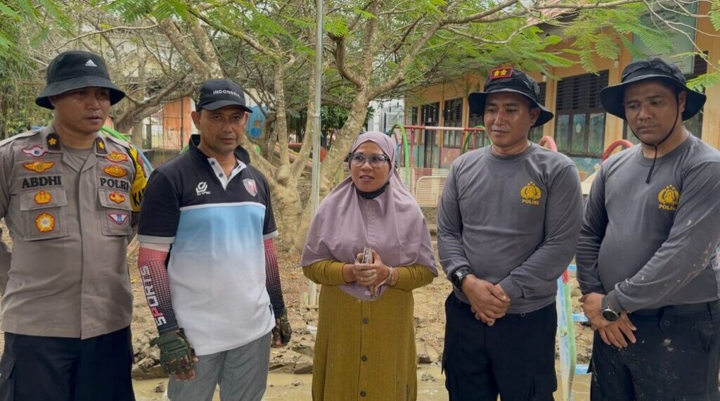 Aceh Utara — Rasa haru dan syukur menyelimuti lingkungan TK Negeri Pembina Muara Batu, Desa Cot Seurani, Kecamatan Muara Batu, Kabupaten Aceh Utara, setelah sekolah tersebut berhasil dibersihkan dari endapan lumpur pascabanjir berkat gotong royong personel Polres Lhokseumawe bersama BKO Sat Brimob Polda Kaltim.