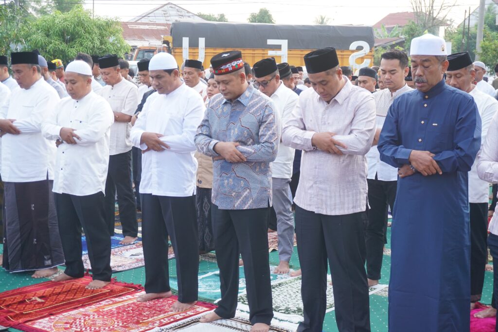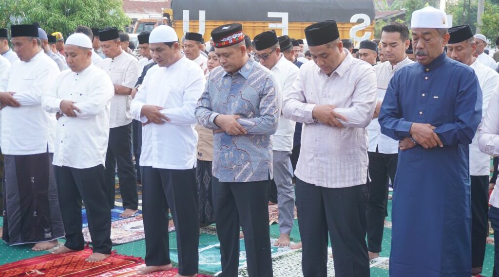 Lhokseumawe – Sholat Idulfitri 1 Syawal 1446 Hijriah di Lapangan Mapolres Lhokseumawe berlangsung khidmat di bawah terik mentari pagi. Jemaah yang terdiri dari personel kepolisian dan warga setempat memadati Halaman Satya Haprabu, larut dalam suasana penuh keimanan dan kebersamaan, senin (31/3/2025) pagi.