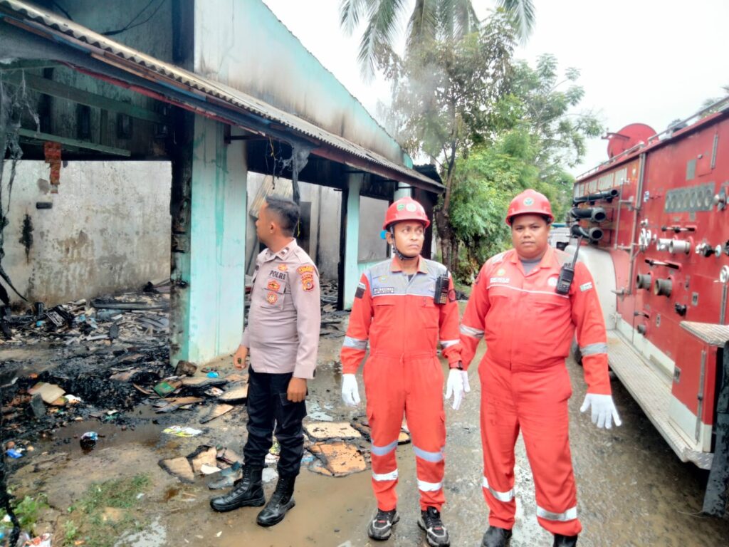 Aceh Utara — Polsek Dewantara, Polres Lhokseumawe bergerak cepat dalam memberikan pelayanan kepada masyarakat saat terjadi musibah kebakaran yang menghanguskan dua unit kios permanen di Dusun Pasi Kuala, Desa Glumpang Sulu Timu, Kecamatan Dewantara, Kabupaten Aceh Utara, Senin (16/6/2025) sekitar pukul 09.45 WIB.