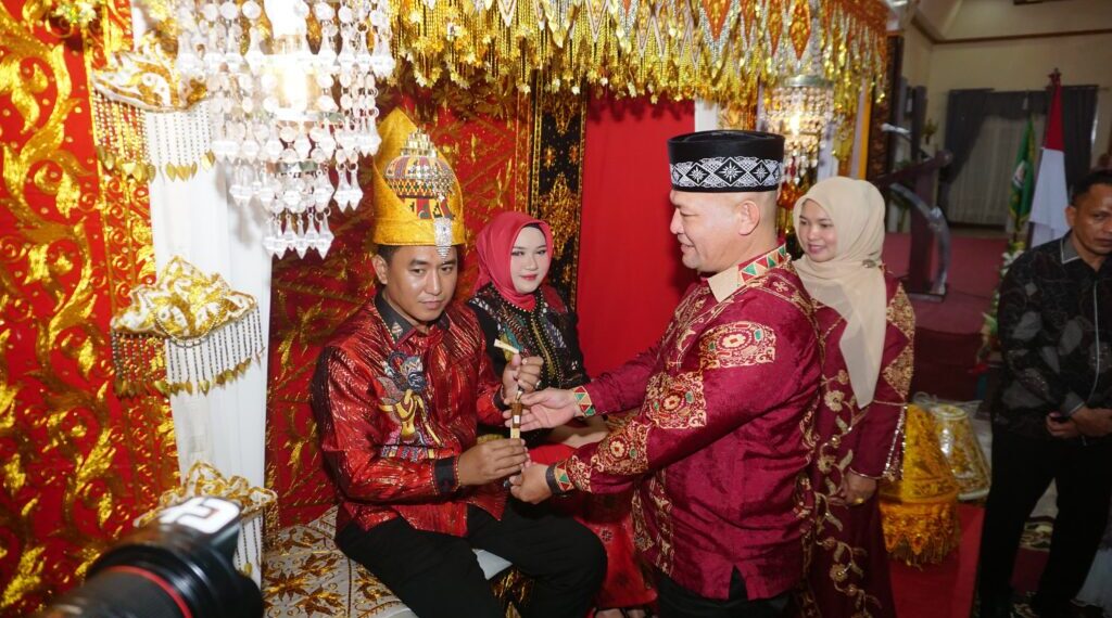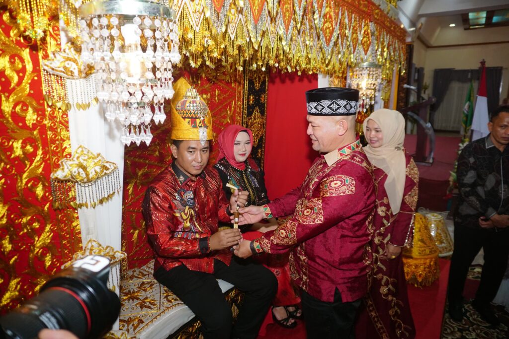 Prosesi adat tersebut berlangsung khidmat dan penuh kehangatan di hadapan unsur Forkopimda serta tokoh agama dan tokoh masyarakat, sabtu (12/4/2025) malam.