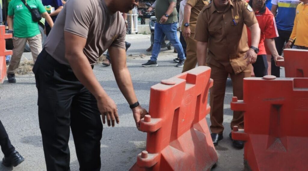 Di lokasi, Kapolres bersama Bupati dibantu anggota lainnya merapikan kembali road barrier (pembatas jalan) yang berantakan di sekitar simpang empat.