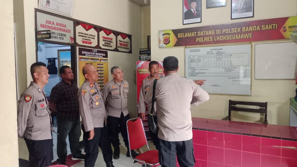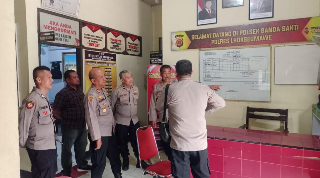 Lhokseumawe – Seksi Pengawasan (Siwas) Polres Lhokseumawe melaksanakan kegiatan supervisi Ke Polsek Jajaran Polres Lhokseumawe. Salah satu Polsek yang sudah di supervisi adalah Polsek Banda Sakti, Desa Keude Aceh, Kecamatan Banda Sakti, Kota Lhokseumawe, Selasa (27/5/2025) pagi.