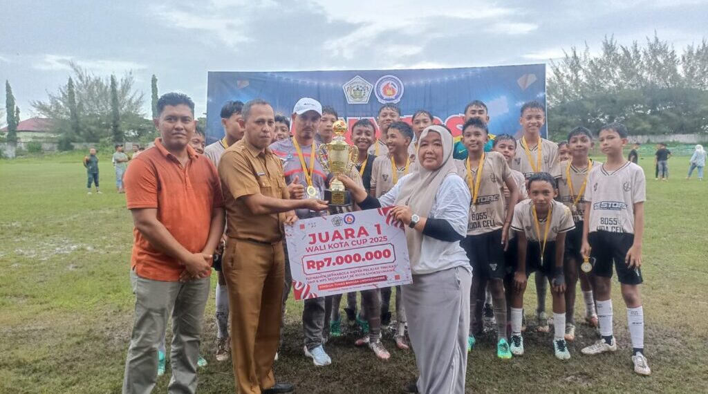 Lhokseumawe – SMP Negeri 5 Lhokseumawe berhasil meraih juara I Turnamen Sepak Bola Antarpelajar SMP Sederajat Wali Kota Lhokseumawe Cup 2025 setelah mengalahkan SMP Negeri 1 Lhokseumawe melalui adu penalti pada laga final di Stadion Tunas Bangsa, Rabu (16/12/2025) sore.