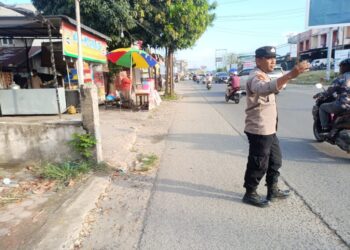Langsa-Kanit Binmas Polsek Birem Bayeuen Aiptu Ruliadi melaksanakan Giat Saweu sikula dalam rangka menjadi pembina upacara di SDN 1 Birem ...