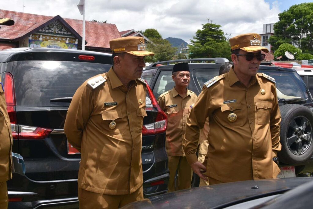 Takengon: Pemerintah Kabupaten Aceh Tengah menggelar apel kendaraan dinas di halaman kantor Setdakab, Kegiatan ini dipimpin langsung oleh Bupati Aceh Tengah Haili Yoga didampingi Wakil Bupati Muchsin Hasan, Selasa (08/4/2025).