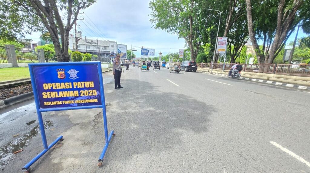 Lhokseumawe – Dalam rangka meningkatkan kesadaran masyarakat terhadap pentingnya tertib berlalu lintas, Satuan Lalu Lintas Polres Lhokseumawe menggelar Operasi Patuh Seulawah 2025 di Jalan Merdeka Barat, tepatnya di Simpang Taman Riyadah, Kecamatan Banda Sakti, Kota Lhokseumawe, Selasa (15/7/2024) siang.