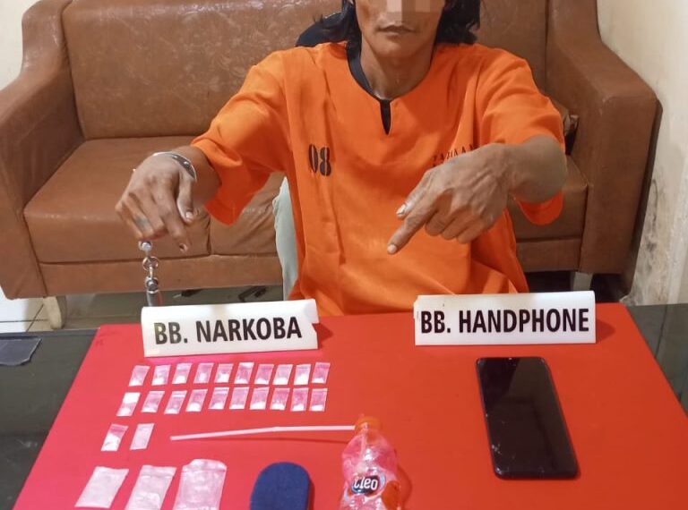 Total barang bukti yang berhasil diamankan dari tangan tersangka adalah 22 paket narkotika jenis sabu dengan berat bruto 4,01 gram, beserta sejumlah barang bukti lainnya seperti 1 unit handphone, penghapus, plastik klip, alat hisap/bong, kaca pirek, korek api gas, dan 1 sendok sabu dari pipet.