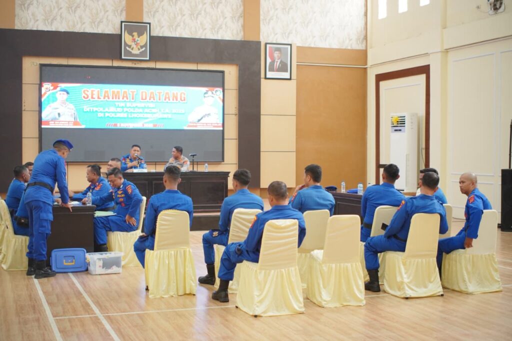 Lhokseumawe – Tim Supervisi Direktorat Polisi Perairan dan Udara (Ditpolairud) Polda Aceh Tahun Anggaran 2025 melakukan kunjungan kerja ke Polres Lhokseumawe, Rabu (5/11/2025) pagi. Kegiatan yang berlangsung di Aula Gedung Serbaguna Mapolres Lhokseumawe ini dipimpin langsung oleh Wadir Ditpolairud Polda Aceh, AKBP Teja Lesmana, S.I.K., selaku Ketua Tim Supervisi.