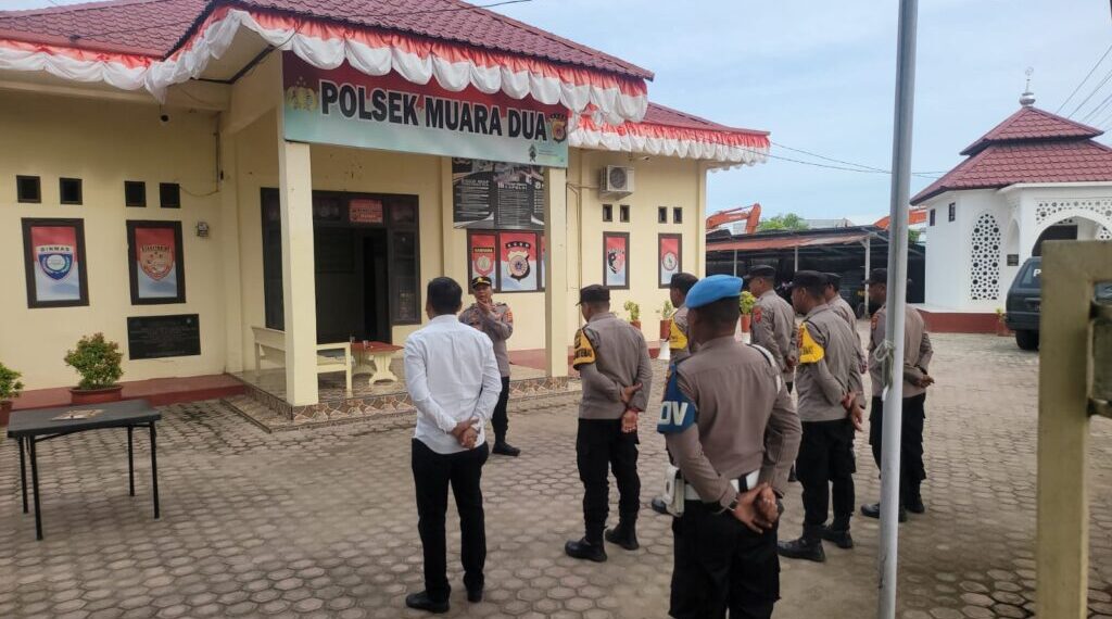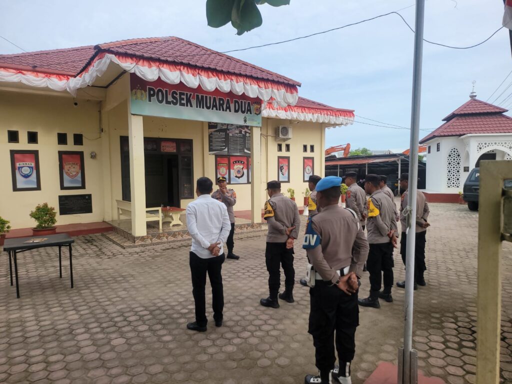 Apel dipimpin Kapolsek Muara Dua Ipda Yudira Nugraha dan diikuti oleh seluruh personel, mulai dari Kasium, para Kanit, hingga Bhabinkamtibmas.