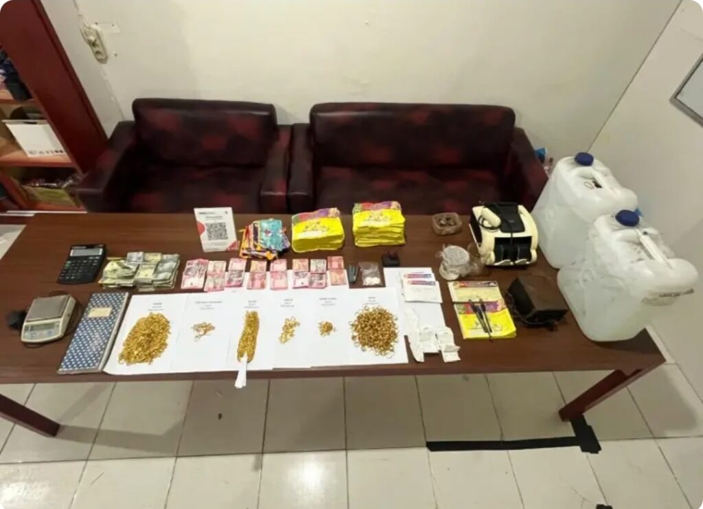 Menindaklanjuti laporan tersebut, tim kepolisian segera melakukan penyelidikan dan menyergap toko tersebut. Hasil penggerebekan mengejutkan: ratusan perhiasan emas palsu dengan total berat lebih dari 1,8 kilogram berhasil diamankan bersama cairan kimia penyepuh, alat produksi perhiasan, cap stempel, timbangan digital, dokumen transaksi, dan uang tunai.