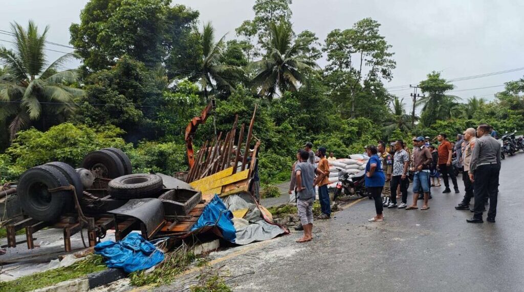 “Truk sempat mundur sejauh 25 meter sebelum akhirnya membentur pembatas jalan dan terbalik. Akibat insiden ini, kerugian materil diperkirakan mencapai Rp 250 juta. Saat ini, pihak kepolisian bersama instansi terkait terus melakukan penanganan lebih lanjut guna memastikan kelancaran arus lalu lintas serta keamanan di lokasi kejadian,” terang Kapolres Erwan.