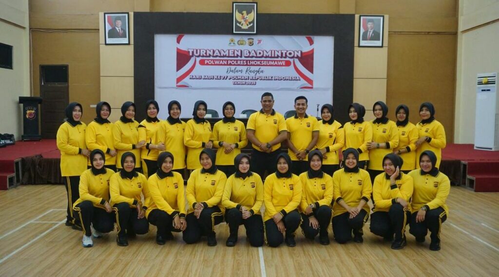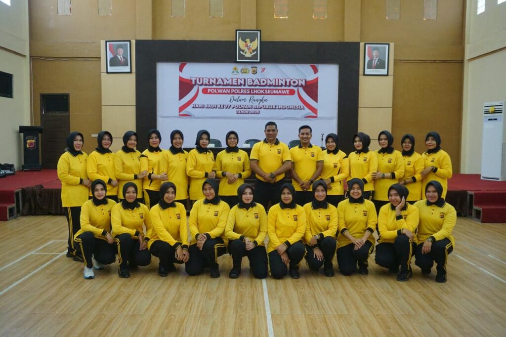 Lhokseumawe – Dalam rangka memperingati Hari Ulang Tahun (HUT) Polwan ke-77, Polres Lhokseumawe menggelar turnamen bulutangkis yang berlangsung di Gedung Serbaguna Wira Satya, Jumat (22/8/2025). Kegiatan ini dibuka secara resmi oleh Wakapolres Lhokseumawe, Kompol Salmidin, S.E., M.M., mewakili Kapolres Lhokseumawe, AKBP Dr. Ahzan, S.H., S.I.K., M.S.M., M.H.