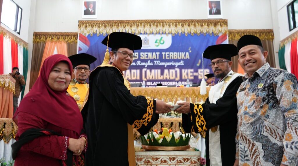 Lhokseumawe – Universitas Islam Negeri (UIN) Sultanah Nahrasiyah menggelar Rapat Terbuka Perdana Senat Universitas dalam rangka memperingati milad ke-56, Kamis (12/06/2025). Acara berlangsung khidmat di Gedung Serbaguna kampus setempat.