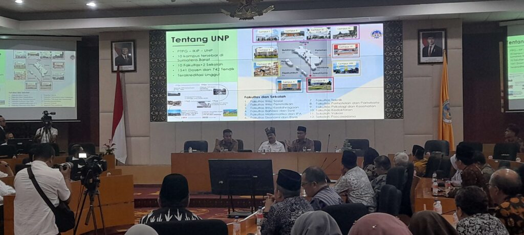 Padang: Universitas Negeri Padang (UNP) berkomitmen mendukung konsep program sekolah rakyat yang dilaksanakan Kementerian Sosial. Hal itu diungkapkan Rektor UNP, Krismadinata saat membuka diskusi terpumpun tentang program sekolah rakyat di Ruang Senat UNP, Senin (28/4/2025).