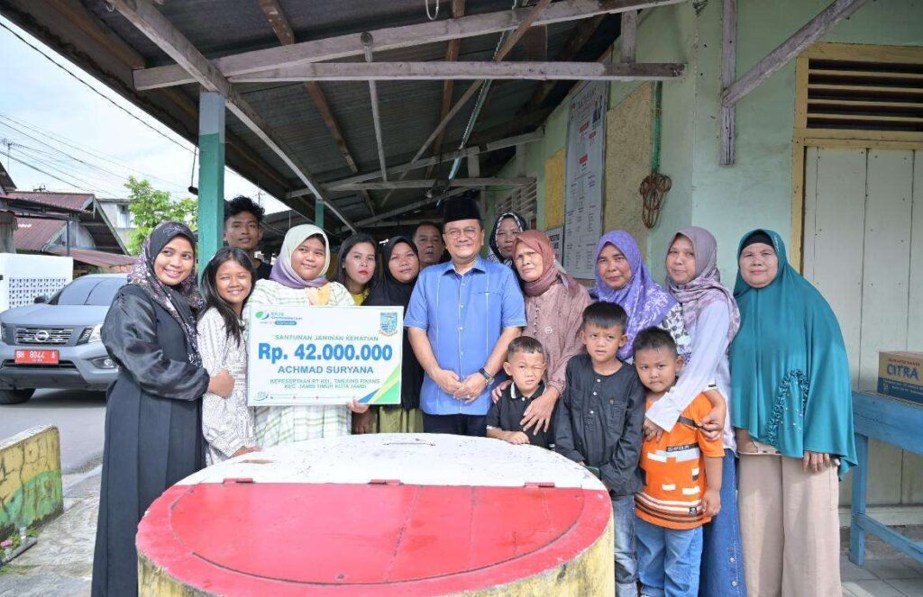 Jambi: Penyerahan santunan kepada keluarga almarhum Ketua RT 29, Kelurahan Tanjung Pinang merupakan bagian dari komitmen Pemerintah Kota Jambi untuk memberikan perhatian dan dukungan kepada ketua RT yang meninggal dunia selama menjalankan tugas.