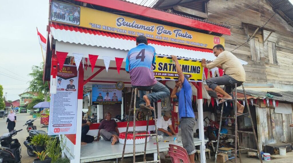 Lhokseumawe – Menyambut Hari Ulang Tahun (HUT) ke-80 Kemerdekaan Republik Indonesia, warga di sejumlah gampong di Kota Lhokseumawe menghiasi Satuan Keamanan Lingkungan (Satkamling) dengan beragam ornamen merah putih. Kegiatan ini menjadi wujud semangat kebersamaan serta kepedulian masyarakat dalam menjaga keamanan dan memeriahkan momen bersejarah bangsa.