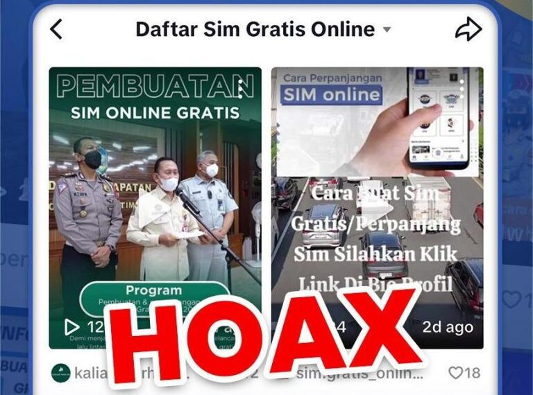 Jakarta – Telah beredar sebuah video di media sosial yang menawarkan pembuatan Surat Izin Mengemudi (SIM) secara gratis. Dalam video tersebut, pelaku menyertakan tautan (link) dan mengarahkan masyarakat untuk mengklik tautan tersebut dengan iming-iming mendapatkan SIM tanpa biaya.