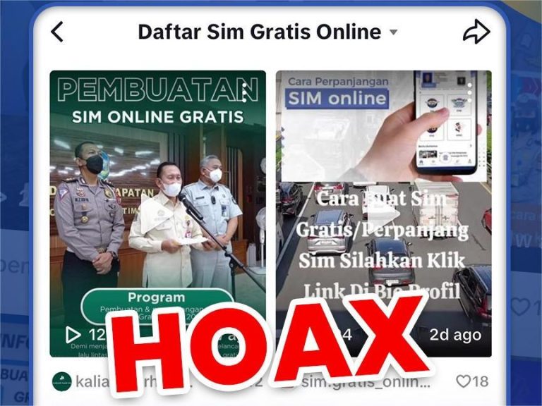 Jakarta – Telah beredar sebuah video di media sosial yang menawarkan pembuatan Surat Izin Mengemudi (SIM) secara gratis. Dalam video tersebut, pelaku menyertakan tautan (link) dan mengarahkan masyarakat untuk mengklik tautan tersebut dengan iming-iming mendapatkan SIM tanpa biaya.